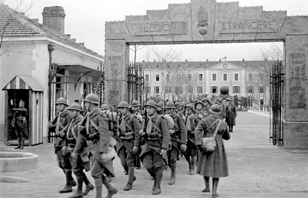 Un destacamento del 1º REI (Regimiento Extranjero de Infantería), estacionado en Sidi-Bel-Abbès, se prepara para partir hacia el frente francés. Marzo de 1940. Fuente: ECPAD. Referencia: DG 22-464.
